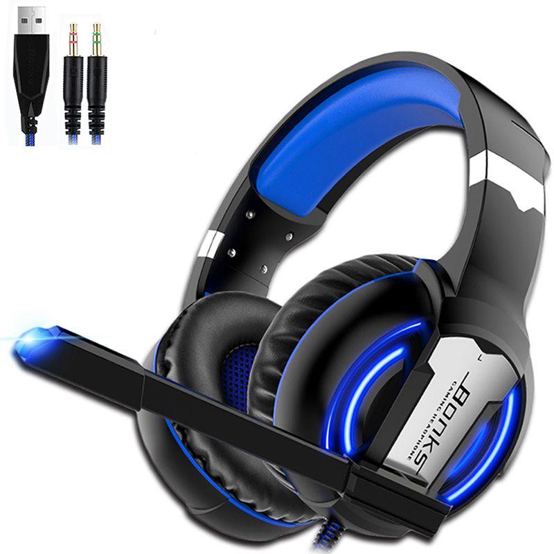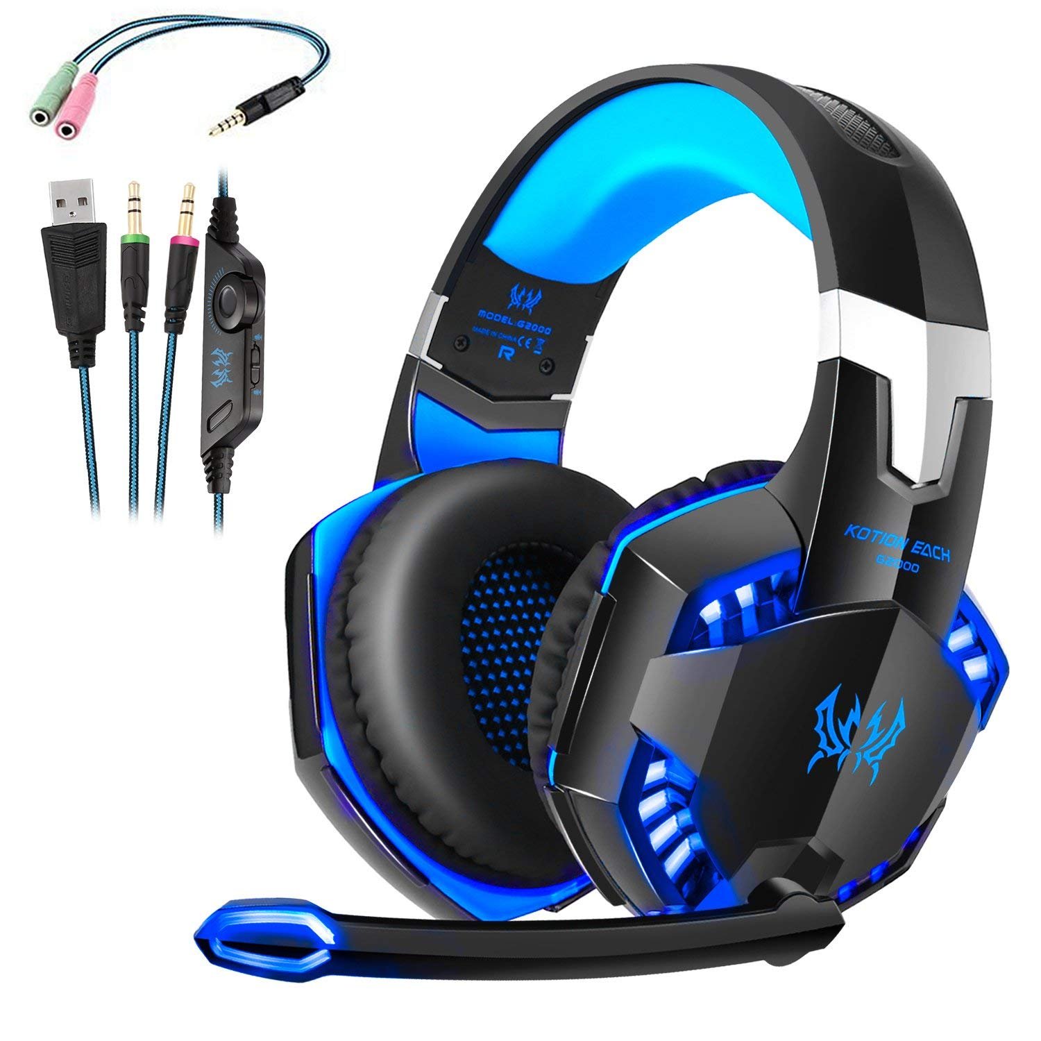 Micro Casque Gaming Ps4 Casque Gaming Switch Avec Micro Anti Bruit Casque Gamer Xbox One Filaire Led Lampe Stereo Bass Microphone Reglable Avec Micro 3 5mm Jack Pour Pc Mac Ordinateur Laptop Bleu G4melab