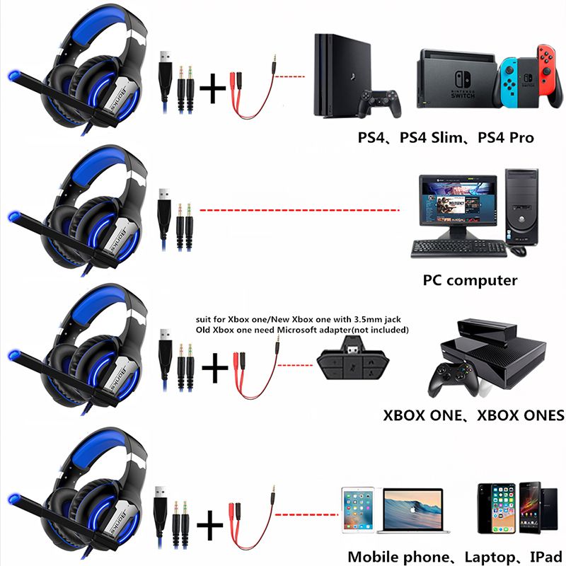 Casques Gamer Stereo Bass Avec Micro Led Lampe 3 5mm Audio Controle Du Volume Pour Pc Tablette Xbox One Playstation 4 Beexcellent Casque Gaming Ps4